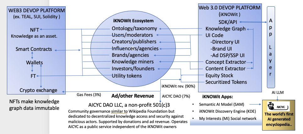 The following prompts request chatGPT to comment on the role blockchain Web3 plays in maintaining knowledge security. The operating diagram below is the reference point. The AICYC governance extends to the factual data provided by a massive directory of reference sources used to generate articles. Also access to knowledge mining tools is built into the platform for purposes of adding knowledge to the AICYC without compromising knowledge integrity. This will allow AICYC to grow in the future.