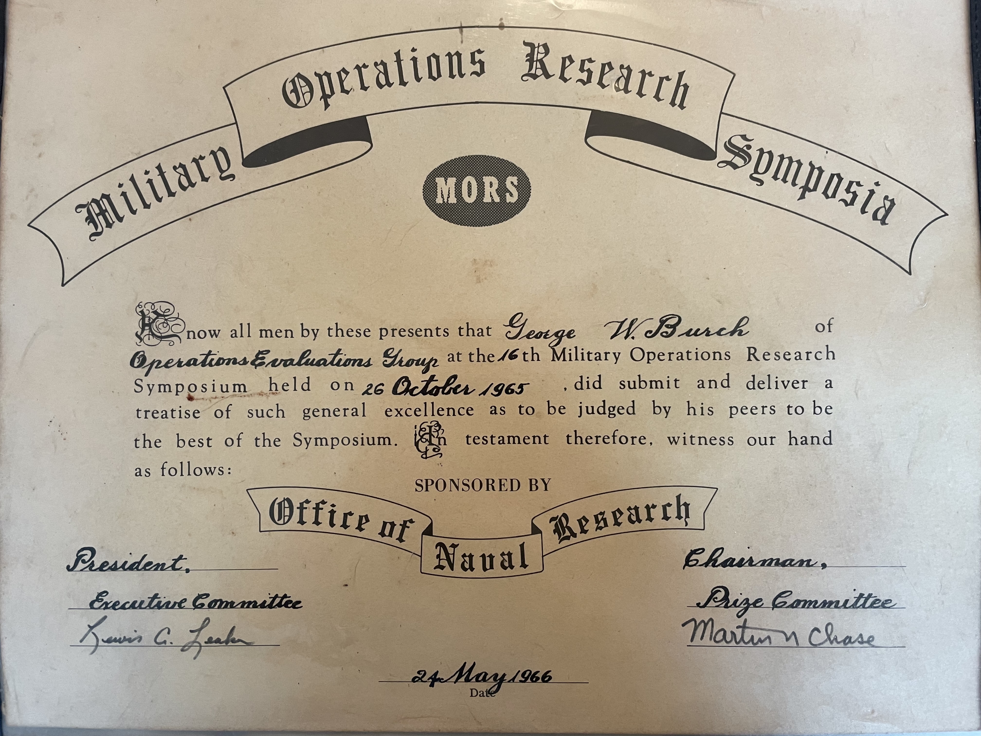 In 1965 George received the Military Operations Research Society (MORS) prize for solving an operations reseach problem using Lisp.