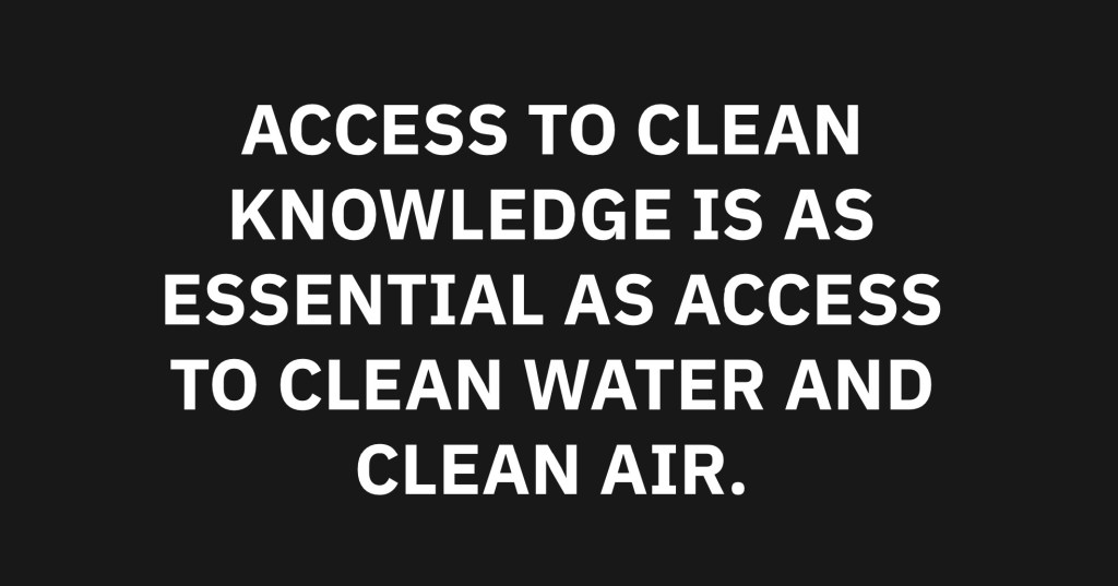 Humans use knowledge in the form of concepts, context and facts to communicate understanding and take actions as a group and for individual curiosity or educational growth. For the past 25 years keyword search technology has dominated access to information while blocking access to new ideas or topics outside the user’s knowledge. Users are steered to content by algorithms that cannot understand meaning. This is the prmary source of knowledge polution on the internet today. When knowledge is polluted by misinformation, disinformation, hate, propaganda, conspiracy theories or factual errors the exchange of information is threatened. We believe access to clean knowledge is a common good that must be protected for all internet users. For the first time in human history access to knowledge can be democratized, decentralized and made immutable for the common good.